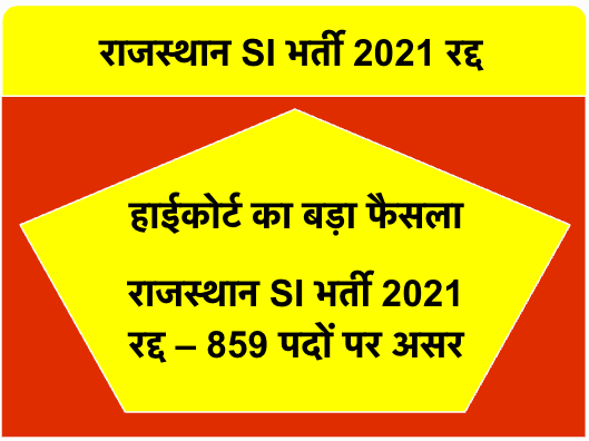 Rajasthan SI Recruitment 2021 CANCELLED    हाईकोर्ट का बड़ा फैसला राजस्थान हाईकोर्ट ने SI भर्ती 2021 पेपर लीक मामले में परीक्षा रद्द की। 859 पदों पर असर, अब 2025 भर्ती में ओवरएज उम्मीदवारों को मिलेगा मौका। पूरी जानकारी पढ़ें। राजस्थान उच्च न्यायालय ने गुरुवार, 28 अगस्त 2025 को SI Recruitment 2021 को रद्द कर दिया है, जो पेपर लीक और भ्रष्टाचार के आरोपों के कारण विवादों के घेरे में था। …